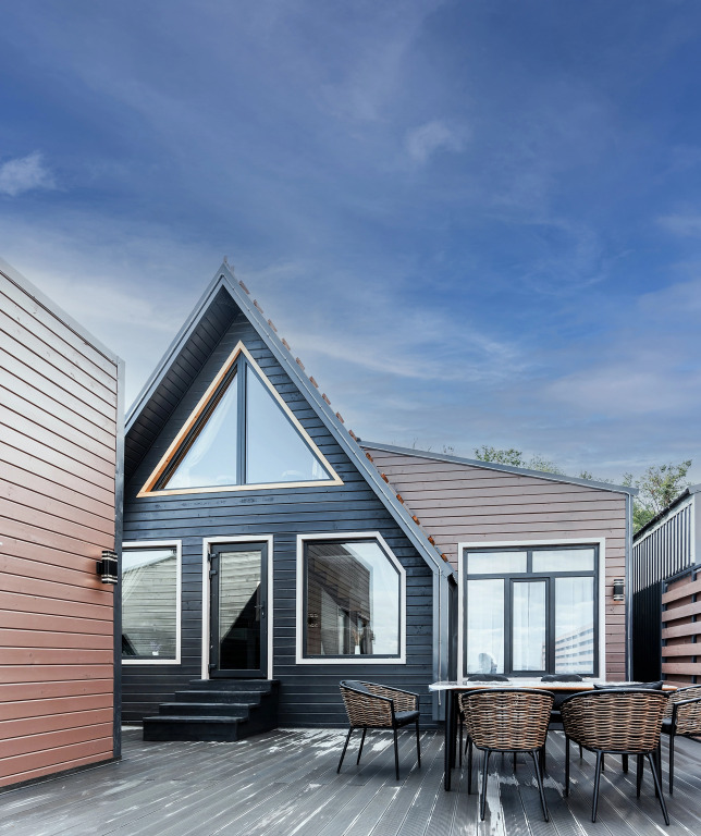 Двухэтажный дом с видом на акваторию Волги вмещает до 6 гостей. На территории предусмотрена собственная терраса, зона для отдыха с лежаками и гриль-зона.