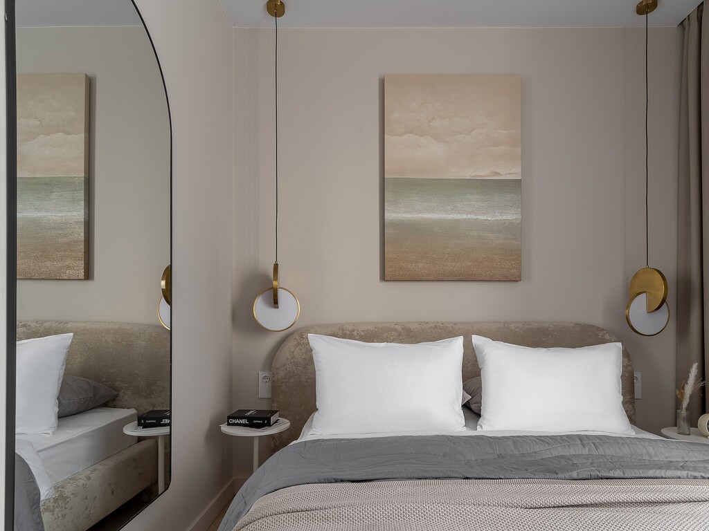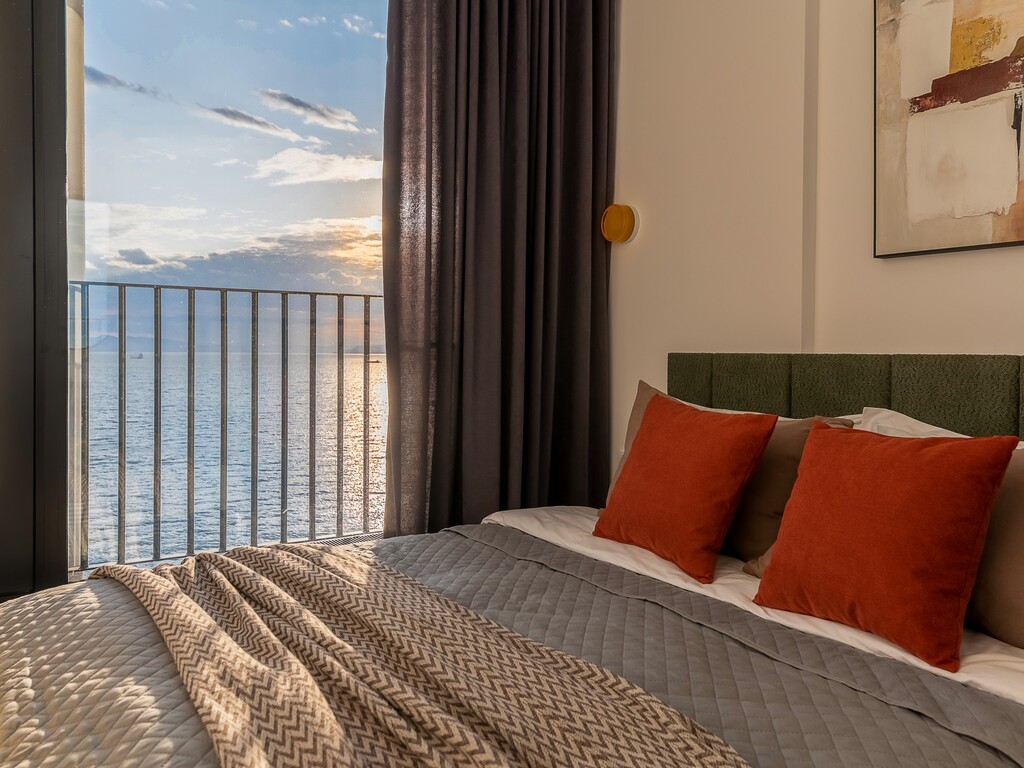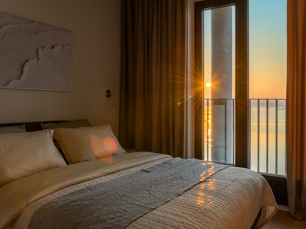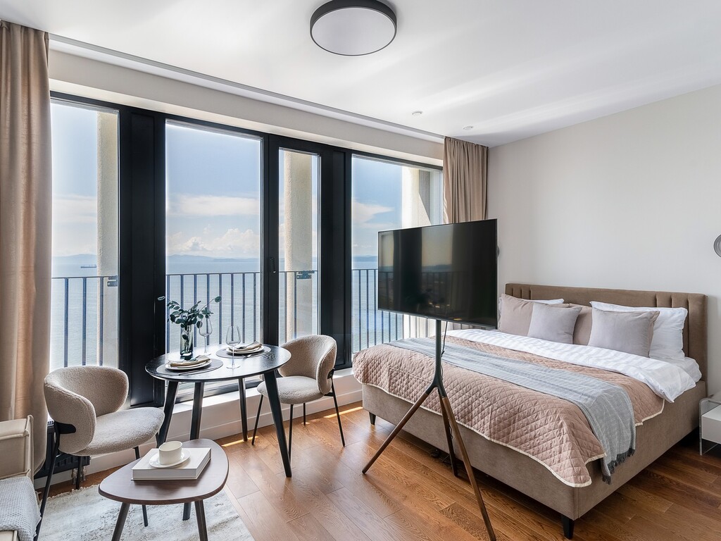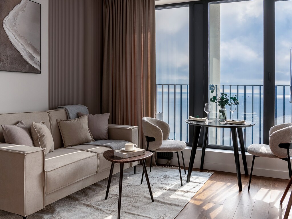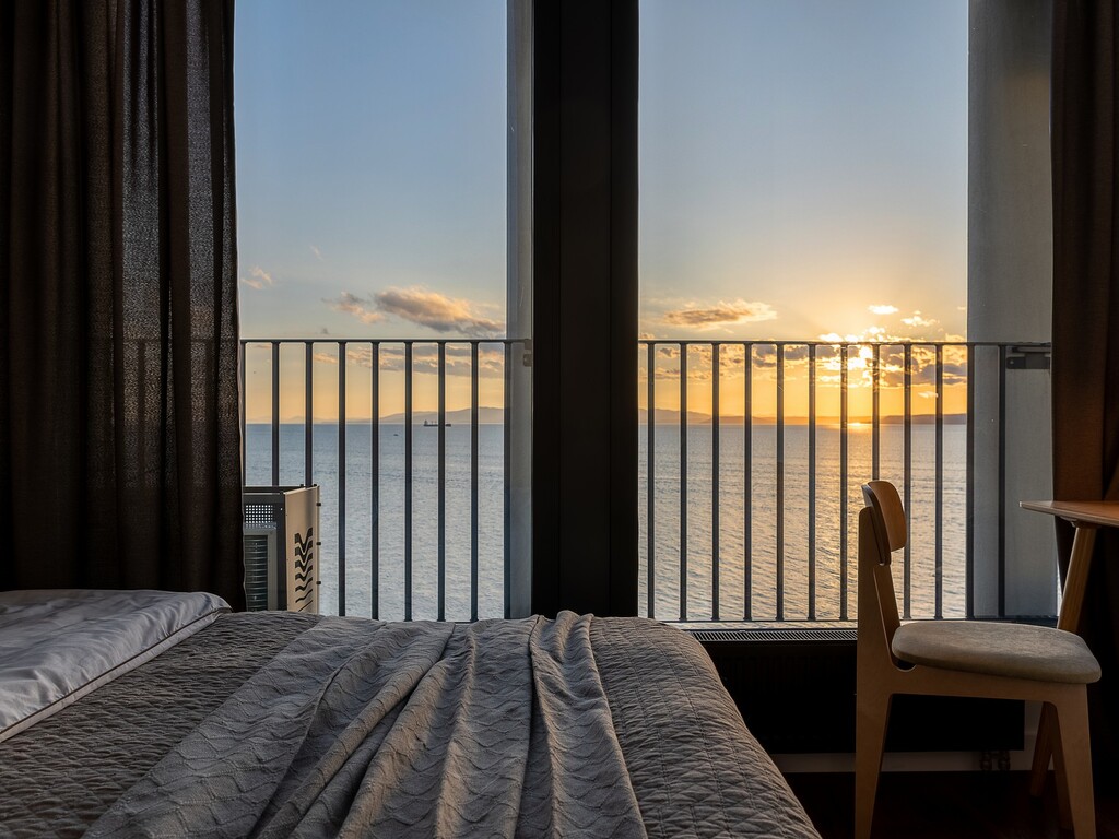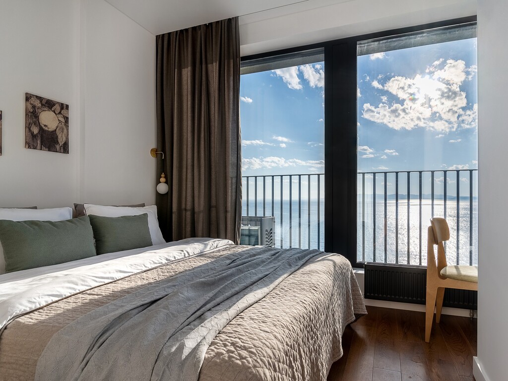 Видно, что квартира новая, чистая. Большая гардеробная, очень удобно все вещи были в отдельной комнате👍🏽 красивый вид на море, большие панорамные окна, квартира идеально для двух взрослых. Но можно разместить еще людей. Администратор отвечал быстро на все вопросы ➕. Были гигиенические принадлежности, хорошие белые полотенца и белоснежная постель👍🏽 Приветственная вода в бутылках 👍🏽