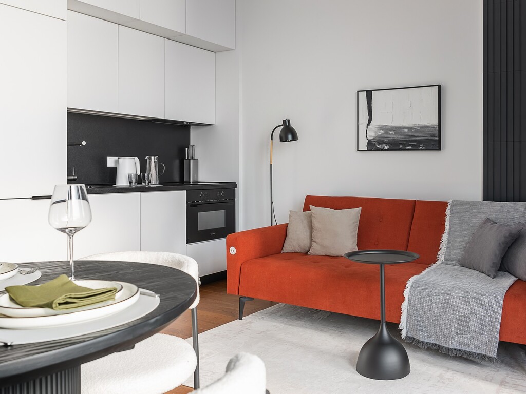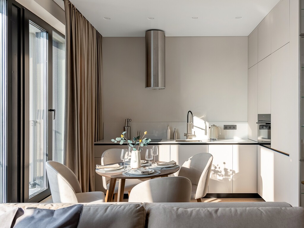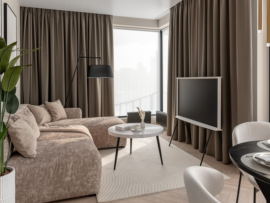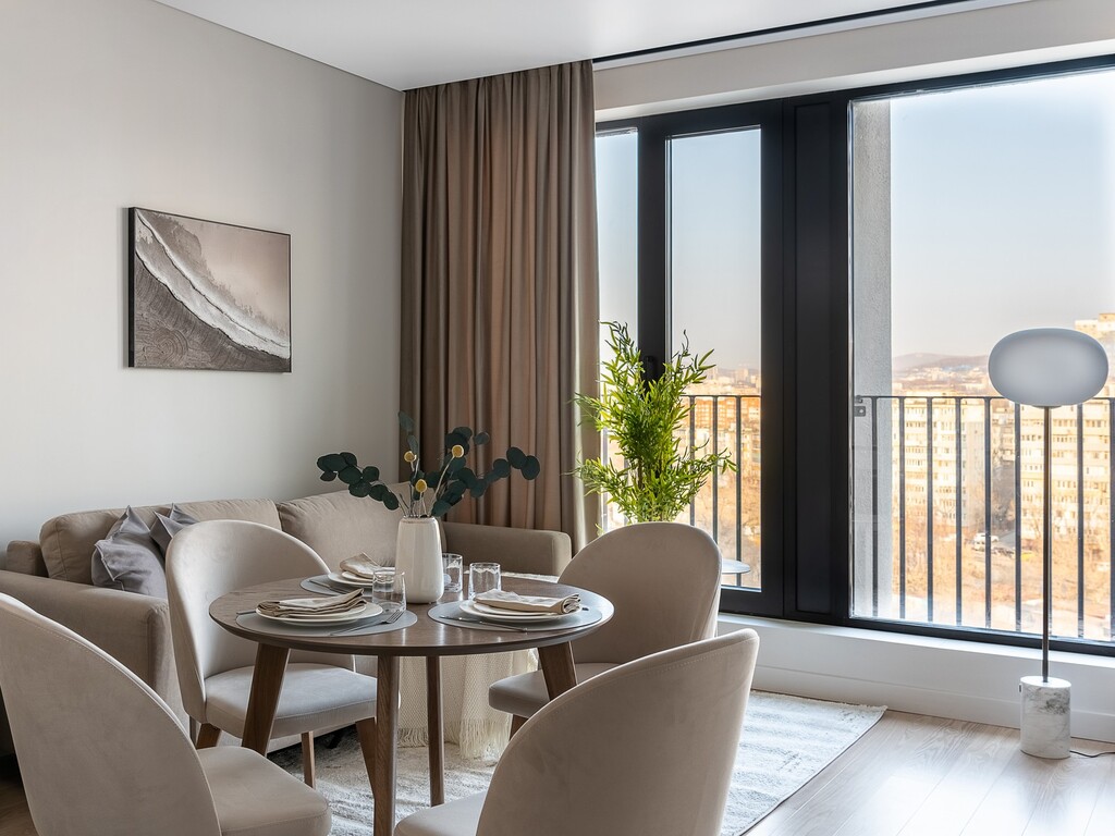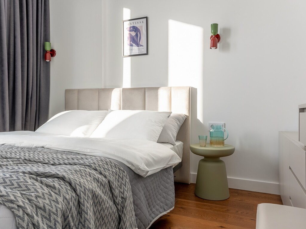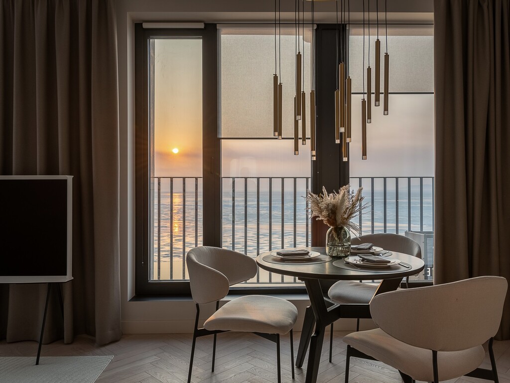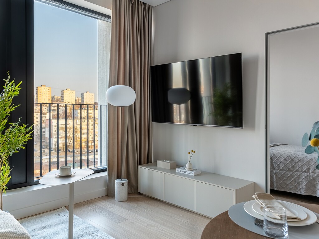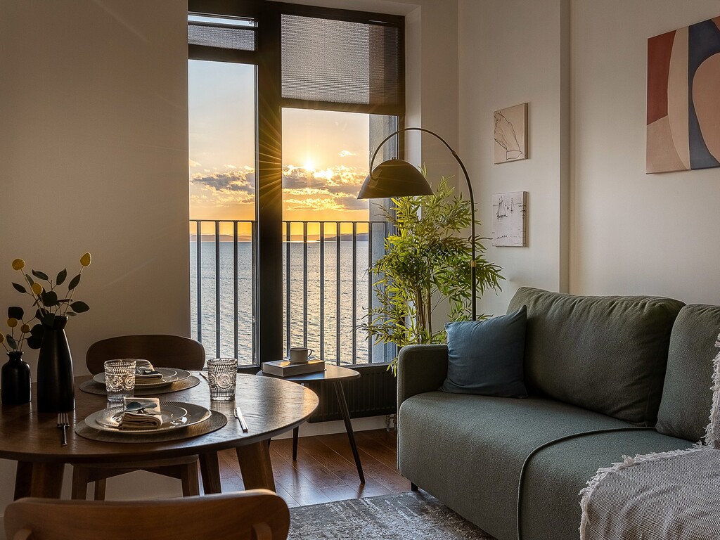 Видно, что квартира новая, чистая. Большая гардеробная, очень удобно все вещи были в отдельной комнате👍🏽 красивый вид на море, большие панорамные окна, квартира идеально для двух взрослых. Но можно разместить еще людей. Администратор отвечал быстро на все вопросы ➕. Были гигиенические принадлежности, хорошие белые полотенца и белоснежная постель👍🏽 Приветственная вода в бутылках 👍🏽