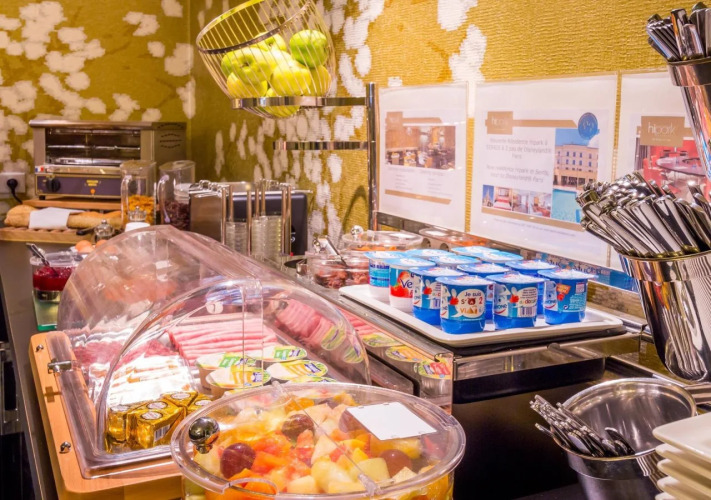 Обеденная зона в отеле представлена рестораном интернациональной кухни. Ежедневно гостям предлагается вкусный платный завтрак с горячими блюдами по системе «шведский стол».