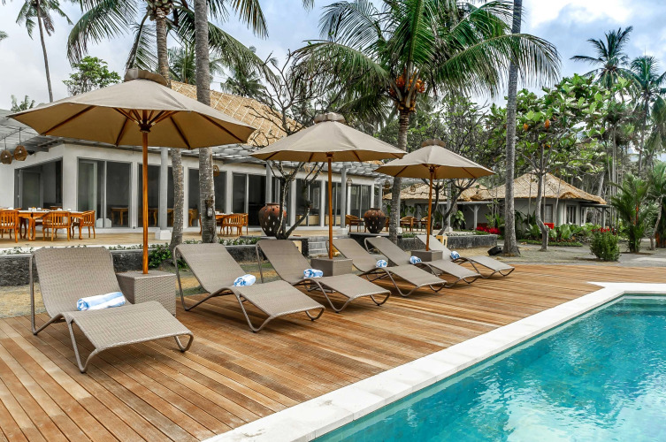 Отель Candi Beach Resort and Spa расположен на берегу океана в заливе Мендира. Расстояние до Денпасара составляет 50 км. До международного аэропорта Нгурах-Рай можно доехать за полтора часа.