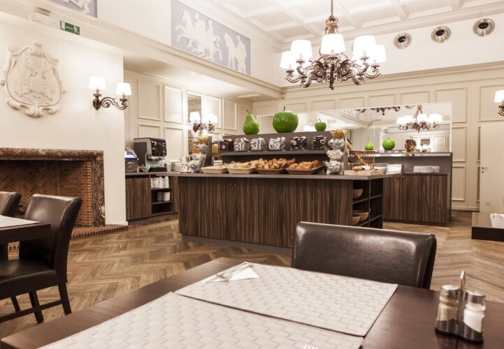 Обеденная зона представлена баром с широким ассортиментом напитков и закусок. За дополнительную плату можно заказать вкусный завтрак «шведский стол» . Более основательно подкрепиться можно в многочисленных ресторанах и кафетериях, расположенных в округе.