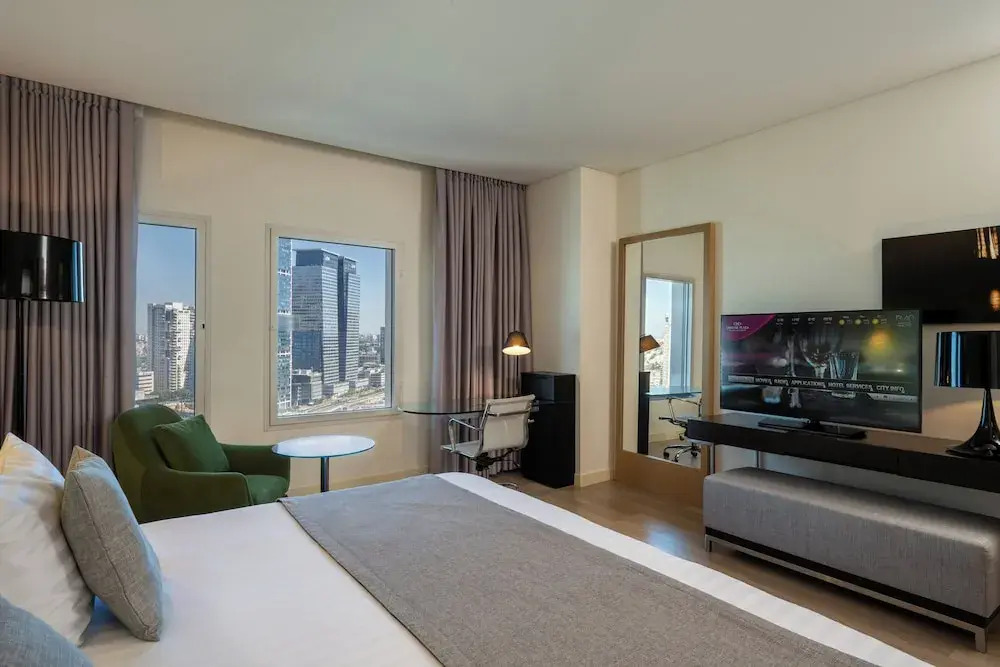 Отель Crowne Plaza Tel Aviv City Center занимает 13 этажей “Квадратной башни” – самой низкой из трех небоскребов Азриэли-центра. В ресторане Floor 11 вы сможете заказать блюда национальной и европейской кухни, суши и тапас ждет гостей в лаундже Bar 24, а выпить чашечку кофе или чая с фирменными десертами от шеф-повара можно в баре Espresso.