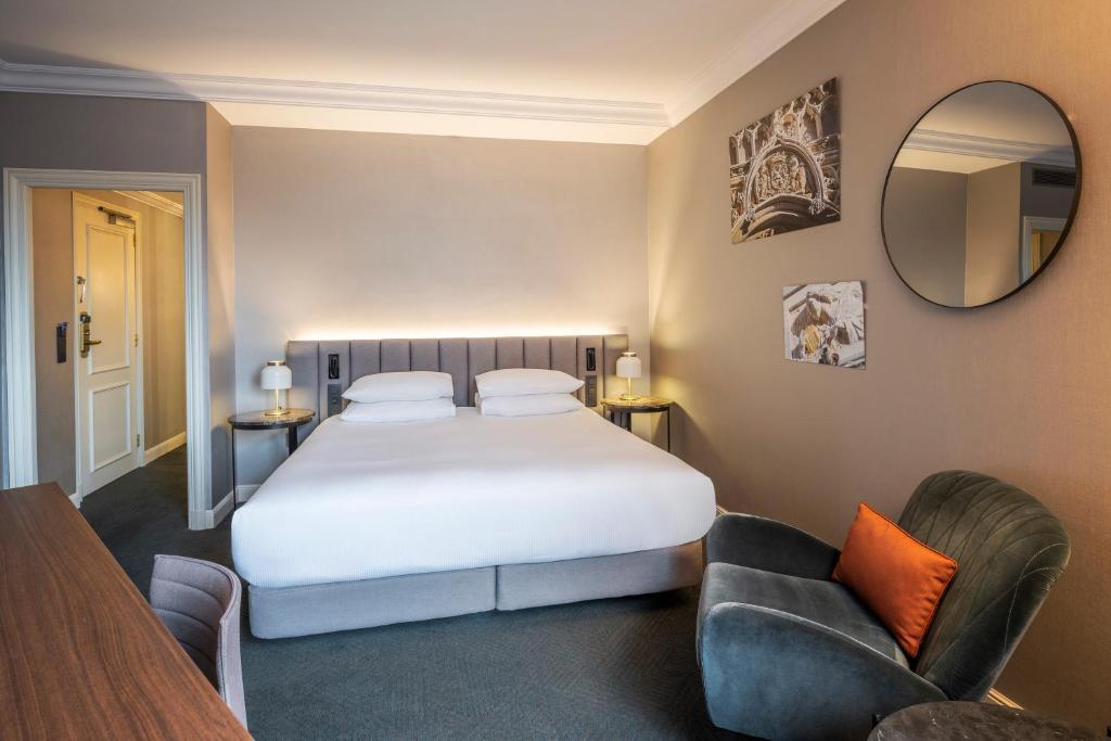 Ультрасовременный отель Hilton Brussels Grand Place станет идеальным местом для ваших семейных или романтических каникул в Брюсселе. Лобби отеля, обставлено современной дизайнерской мебелью, и наполнено естественным светом, проникающим через панорамные окна. В баре Longitude 4' 21° гости могут выпить итальянский кофе, приготовленный профессиональными бариста. Попробовать креативную бельгийскую кухню на основе местных продуктов можно в ресторане L'Epicerie. По воскресеньям в ресторане проводят тематические бранчи.