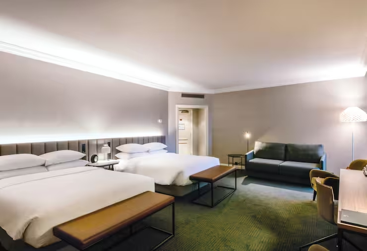 Ультрасовременный отель Hilton Brussels Grand Place станет идеальным местом для ваших семейных или романтических каникул в Брюсселе. Лобби отеля, обставлено современной дизайнерской мебелью, и наполнено естественным светом, проникающим через панорамные окна. В баре Longitude 4' 21° гости могут выпить итальянский кофе, приготовленный профессиональными бариста. Попробовать креативную бельгийскую кухню на основе местных продуктов можно в ресторане L'Epicerie. По воскресеньям в ресторане проводят тематические бранчи.