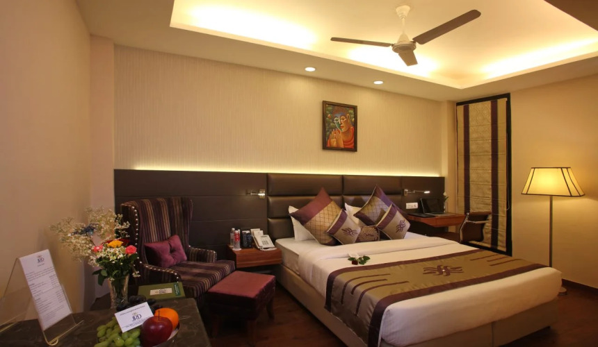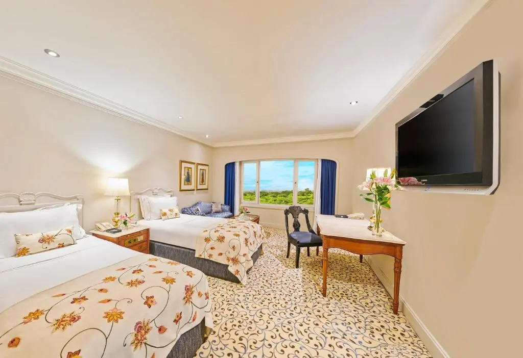 Пятизвездочный отель Taj Palacel находится в дипломатических кварталах Нью-Дели. От него за несколько минут можно доехать до международного аэропорта (15 км), и железнодорожного вокзала (8 км). Из достопримечательностей поблизости храм Бирла, древняя обсерватория Jantar Mantar и государственный музей.